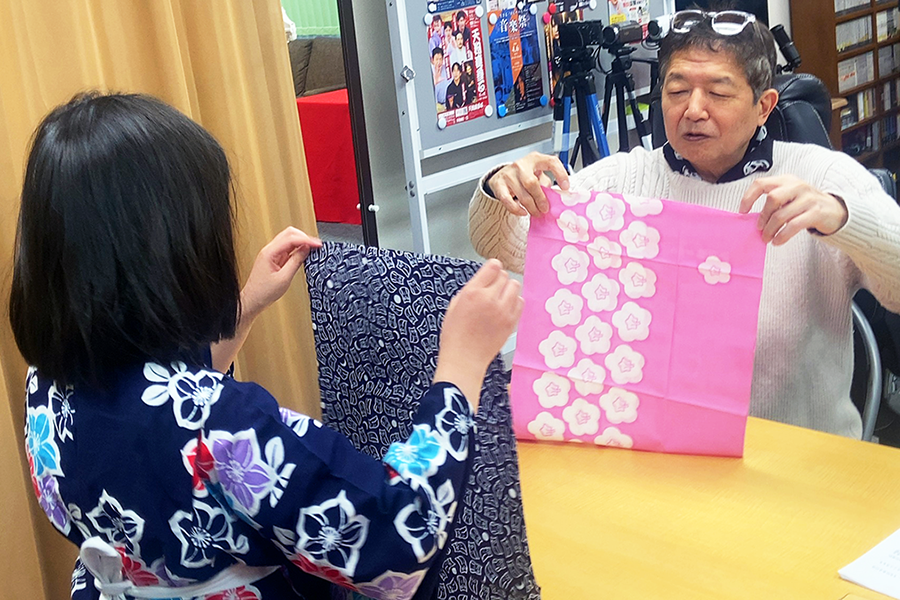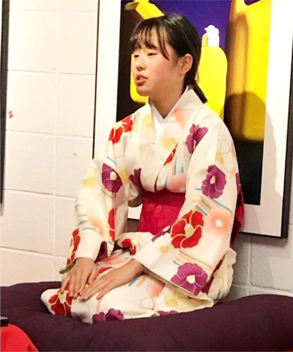 まずは会話をしっかりと覚えて、それから所作のお稽古をしました。扇子の使い方が抜群によくできていましたね。